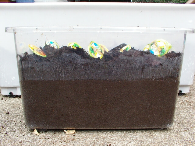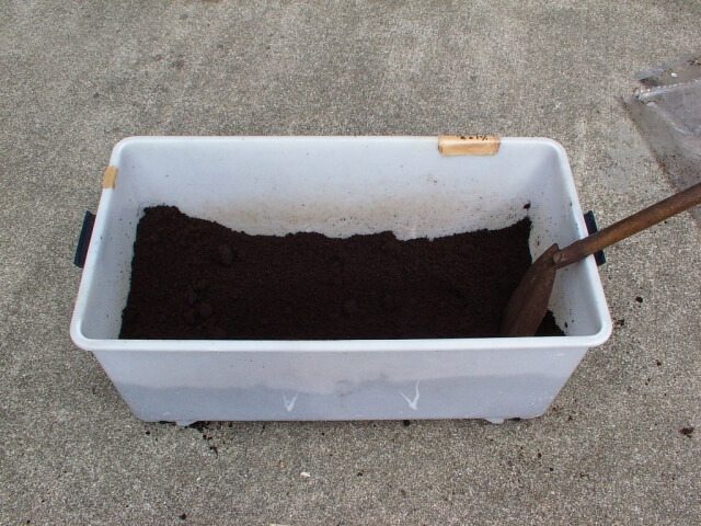 マットの詰め方:ケース底面12~13センチ程度固く詰めて上部3~5センチはフンワリと。