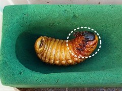 上の静止画像だけでは分かりにくいかもしれませんが、下の動画を御覧頂ければよく分かると思います。ただ下の動画の画像はヘラクレスの幼虫ではなく、クワガタ(オオクワ)になりますが、手と口が固まる様子についてはほとんど同じですのでご参考にして下さいませ。