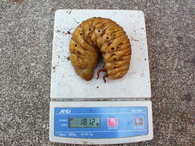 昨年の12/19にご紹介したラミレスゾウカブトがまだ羽化せず、またエサ交換の日がやって来ました。今回計測したのが下の画像です。