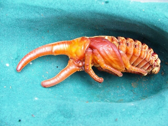 こちらも胸角先端が少し波打っています。蛹色が薄いので、どうやら昨日蛹化したような感じです。