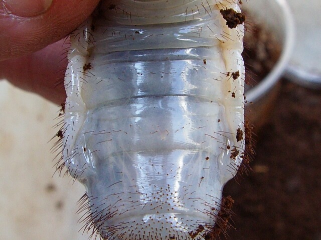 ④数度えさ交換の後、♀はそのままブロー容器で羽化、♂は蛹室の形状がよければそのまま羽化、悪ければ前蛹の段階で人工蛹室に移し変える。