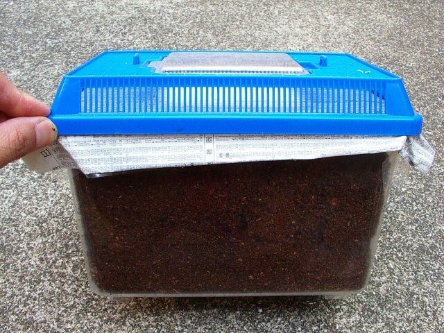 そしてケースと蓋の間に新聞紙とビニール(穴の開いた)をダブルで挟みます。