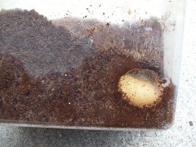 上記は小型ヘラのレイディ♂の蛹室の様子ですが、上記の作り方であれば、かなりギリギリですがこのまま蛹化してよしとします。