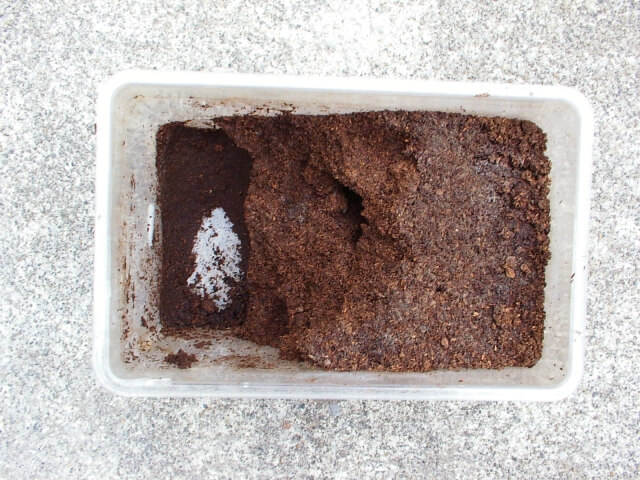 【前蛹を取り除いた跡のケース内】