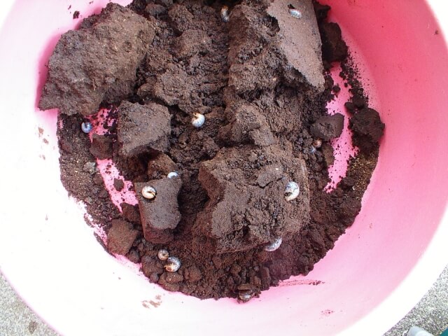 上記のセット方法で幼虫35頭・・・。ゾウカブトにしてはちょっと少なめの結果でした。セット期間は2ヶ月と少し長かったですが、まだ幼虫は小さかったので後期に産卵したものが多かったのかも・・。それにしてもセットをあけた時、エサが全然なくカラカラだったので最後はエサ不足にさせてしまったようです。かわいそうな事をしました・・ごめんなさい。。