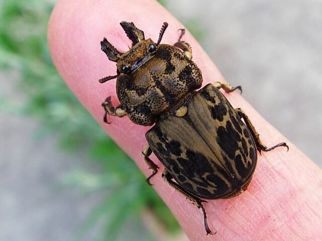 模様が独特の特徴があるムナコブクワガタ。体が湿っているときは真っ黒ですが、乾いてくると上記の画像のように独特の風貌に変貌します。 小型種ながらとても奇怪かつ可愛いクワガタです。