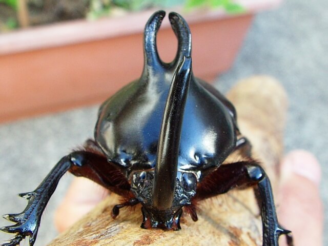 正面からみると胸角の形が本当にうさぎの耳みたいに見えますね。この個体は少し頭角が曲がっておりますが、可愛いのでご愛嬌を・・・。