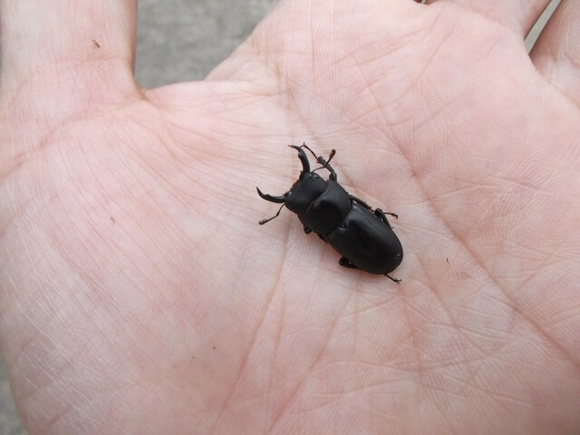 とっても小さい、クワガタ、体長20mmほどです。・・・何のクワガタかわかりますか?そうです、スジクワガタです。よーく見ると顎の内歯がインドアンテみたいに内歯上がりになっています。これが特徴です。コクワだとこのサイズクラスだとほとんどの個体は内歯は消失している可能性が高いです。顎の開きもコクワの方がもっと湾曲しています。