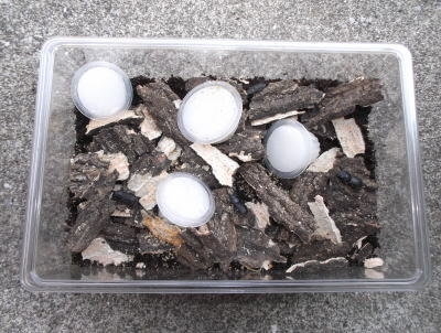 ネブトクワガタはとても熟成したマットに産卵する傾向があります。 産卵させるケースの大きさは私的にはクリーンケースS程度で十分だと思います。マットの水分量は少々多湿の方が良いように思います。 また産卵の管理温度につきましては、飼育されるネブトの種によって生息地の環境を考えて設定するのが一番無難だと考えています。 今回は25℃前後の管理にします。