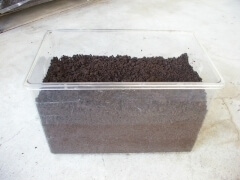 ケース底面10センチ程度固く詰めて上部3センチはフンワリと。