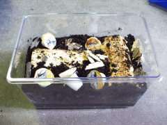 但し材全てに産卵していた場合は材に入り込んでしまっているので外側からは幼虫が確認出来ません。その場合は2ヶ月ほどして一度材を掘り起こしてみて下さい。材に産卵の形跡があればそのまま割り出しを行ってもよいと思います。