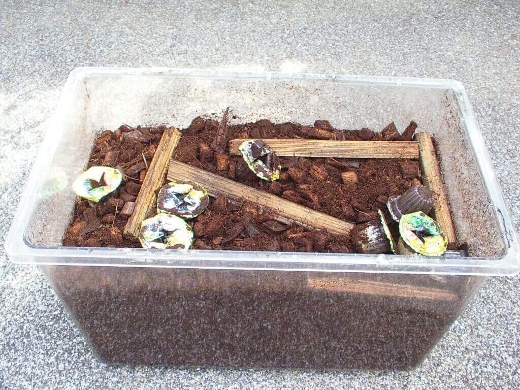 【マットの詰め方】ケース底面10センチ程度固く詰めて上部3センチはフンワリと。