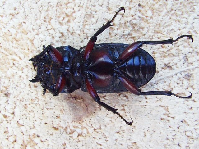 基本的には早朝~午前中が私的にはベスト。蹴り採集時には落ちてくる場所が見えることが必須条件。暗くなると厳しくなる。後は、夕方~夜間。こちらは灯火採集に向きます。アカアシクワガタは♂♀共に比較的小型なタイプなので、♂♀共によく飛翔するようです。