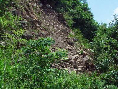 このように崖崩れが発生して道路が寸断され、その先に行けないこともあります。こうなっては危険ですので、その先にある採集ポイントへは諦めなければなりません。