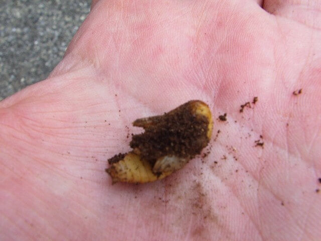 材を一本掘り起こしてみました。結構ボロボロにかじられています。期待が持てます。