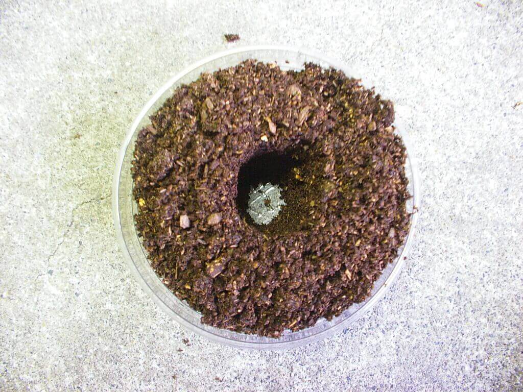 プリンカップ200ccに「くわマット」を詰める。マットは勿論加水調整してあります。手でぎゅっと握って水が染み出ない程度で、土団子が作れる程の水分量です。