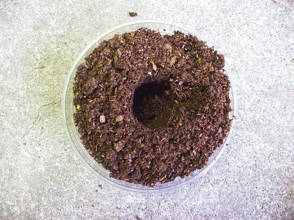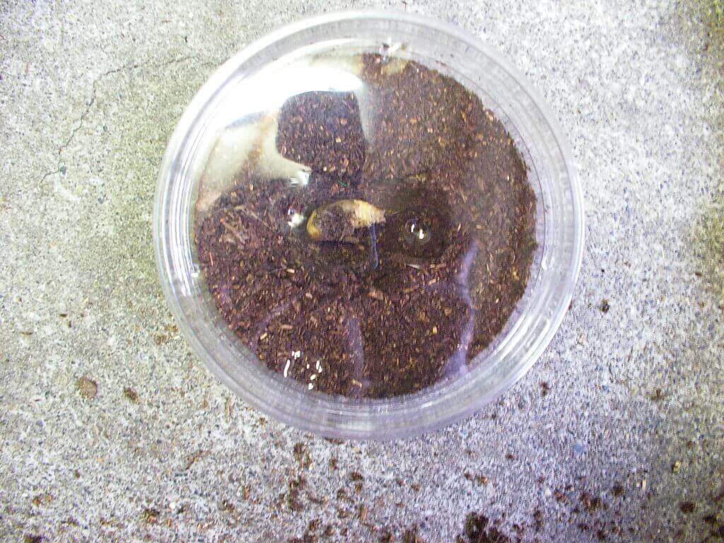 一頭だけ蛹で出てきた個体は同じようにプリンカップにマットにて管理します。ただし既に蛹なので、簡易的に人工蛹室を作ってやります。