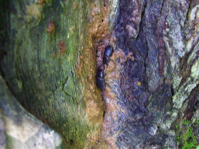 次のニレの樹の樹液だまりでネブトクワガタを発見!ネブトクワガタ♂2頭です。ネブトクワガタはこのような樹液がドロドロと溜まっている場所でよく発見できます。