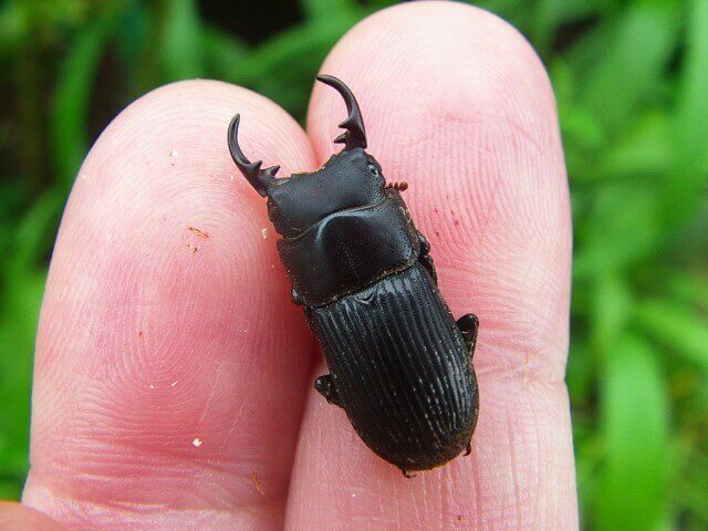 おお、ネブトの♀個体でした。いやぁ嬉しいですね。私が行く所では、ネブトって意外に♂ばかり採れて♀はなかなか採れないんです。この♀は貴重ですね。独特のアゴ形状と、背中のはっきりとしたタテジマライン。小さいですけど、素晴らしいです。(^^)
