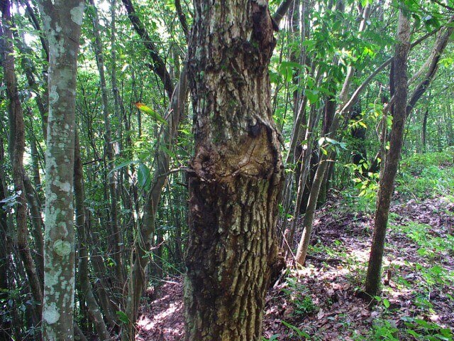 ※赤い丸で囲った部分を見ながら樹を蹴ります。