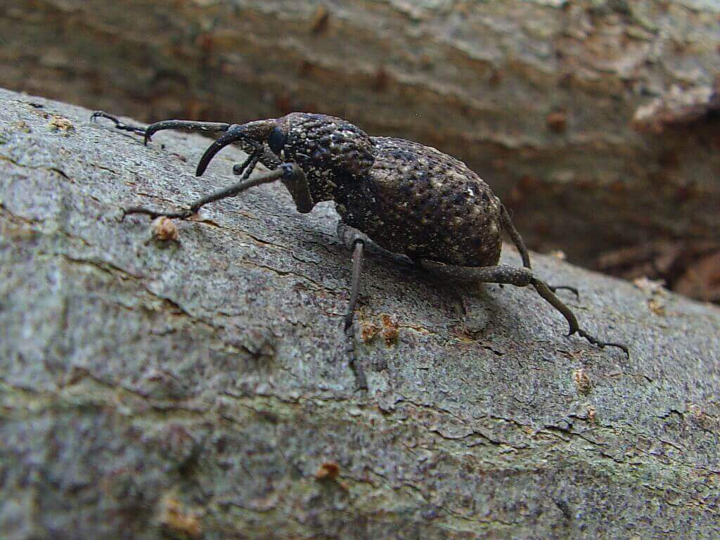 オオゾウムシ、この虫も良く樹液採取の際に見かけますね。独特な模様、樹の色と保護色になっているのでしょう。動きはのろく、捕まえると死んだふり?をするのかあまり動きません。