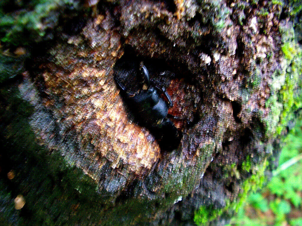 こちらではヒラタクワガタ♂が潜んでいました。おもいっきりピンボケ画像でスミマセン。