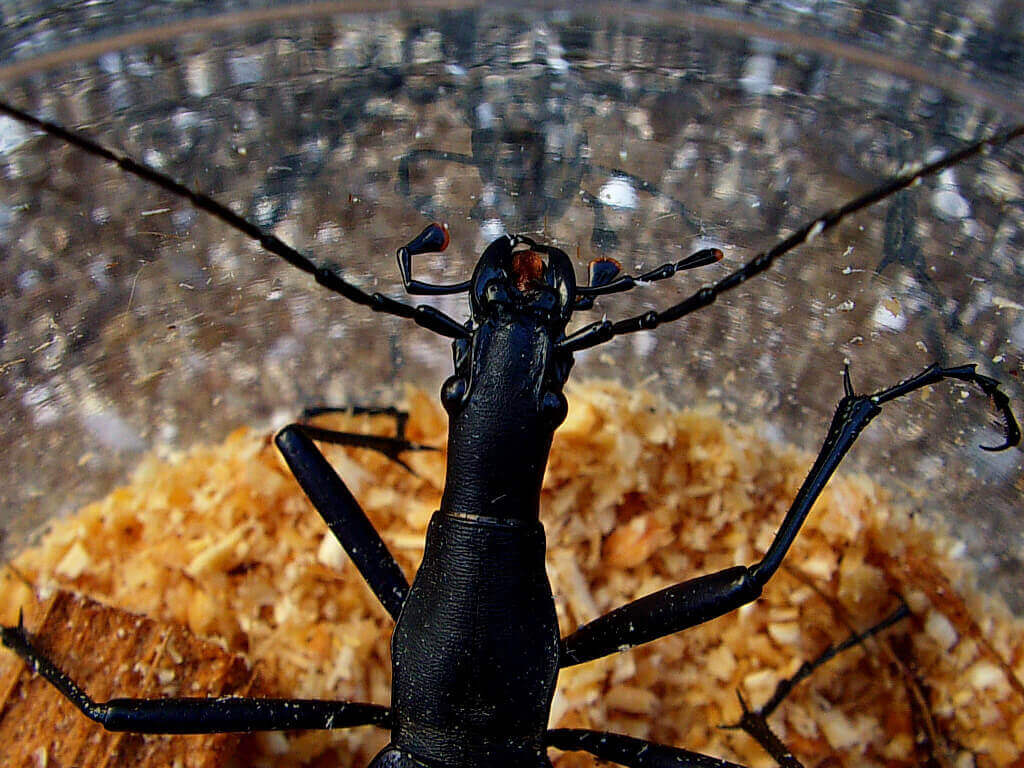 全然じっとしてくれず、撮影不可能だったので、仕方なく、持ち歩いていたマット入りプリンカップに入れて撮影。とても大きく、60mm位はあると思います。