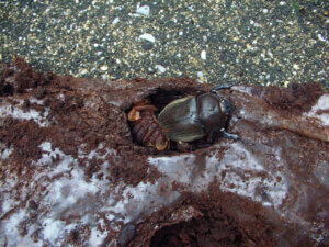 この姿は、マイマイカブリ。暗かったのでライトを照らして撮影。