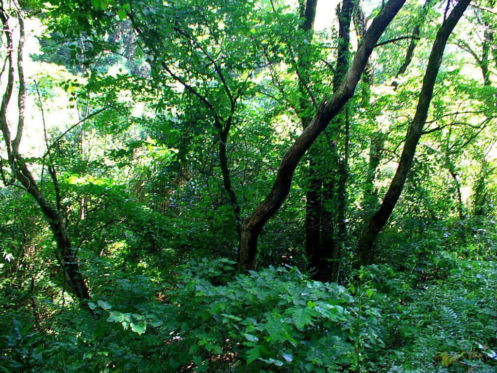 このクヌギの樹はとても大きく、葉っぱもかなり上の方でしか付いていません。ルッキングでは当然何も見えません。こういう樹はあまり私的に好みではないのですが、一応念の為に蹴ってみると、
