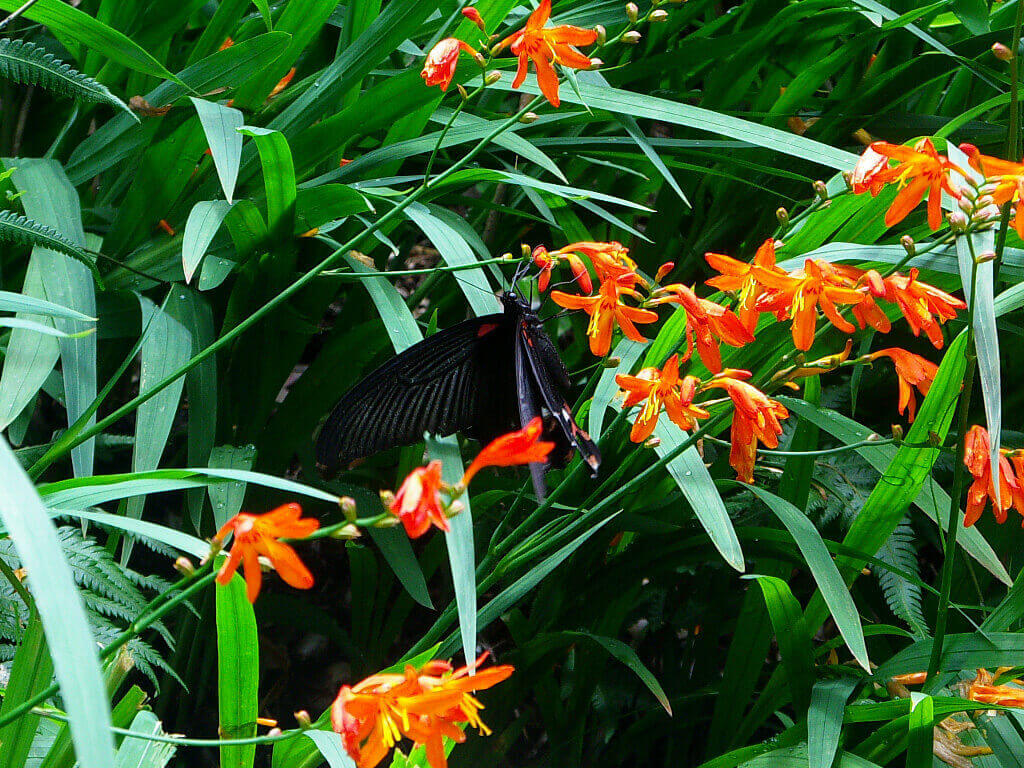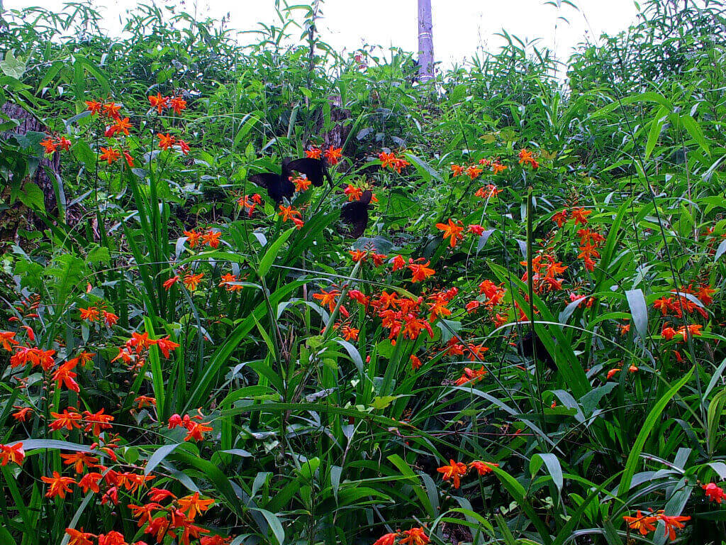 途中、赤い花に沢山の蝶が集まっているのを見かけました。