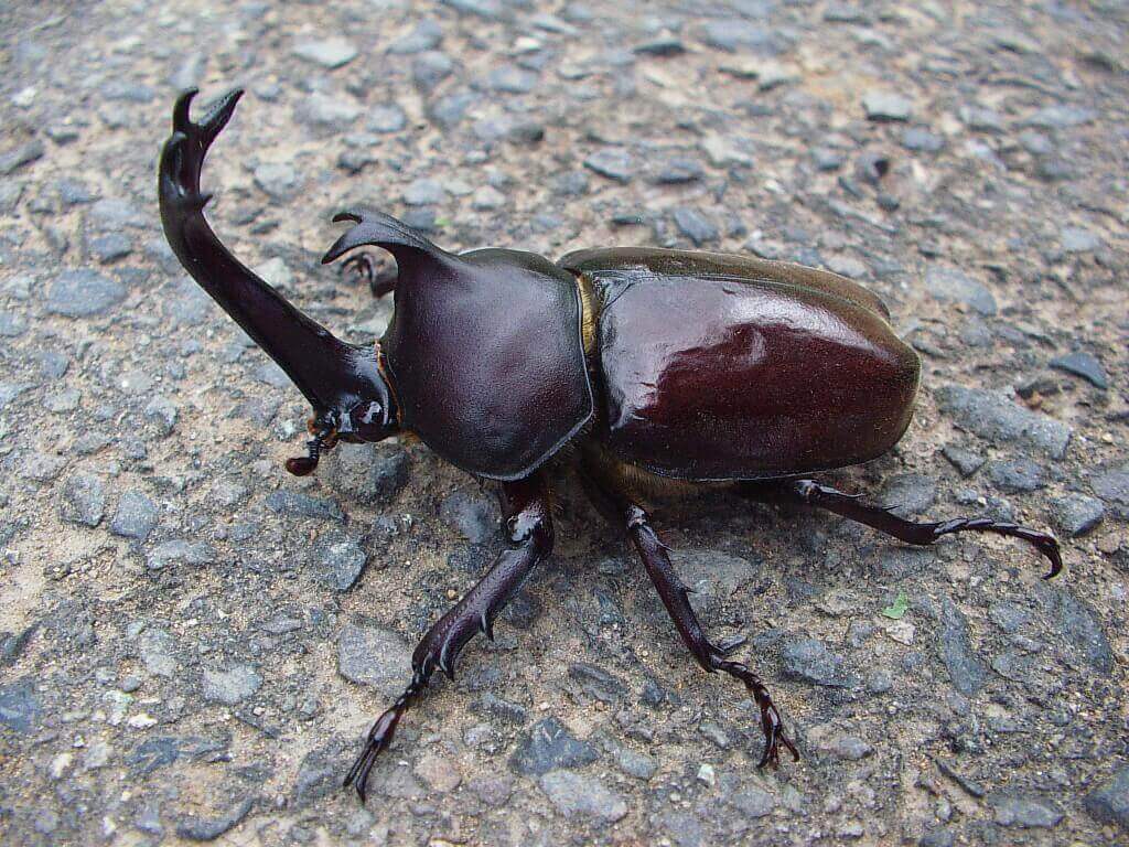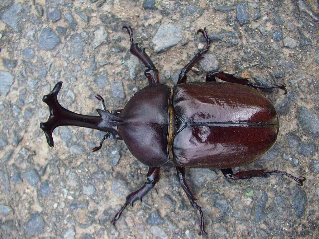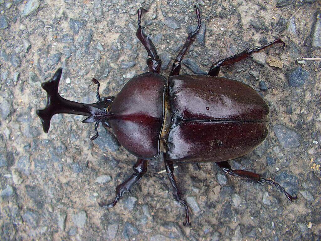 正体は道路(アスファルト)の上に落ちて来た大きなカブトムシの♂でした。