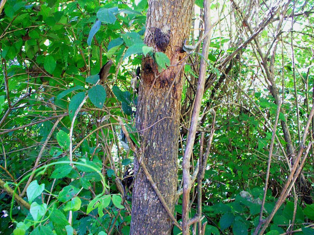 何気に木の裏側を見ていると、ノコギリクワガタ♂中歯型が付いていました。