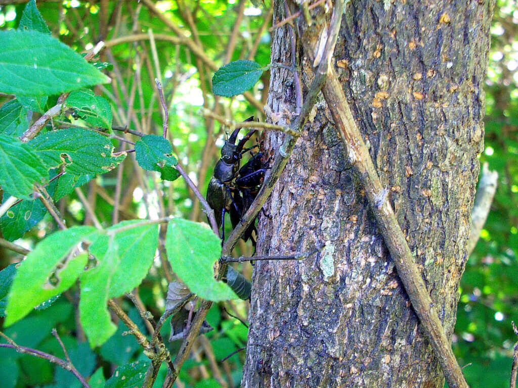 前回の日記「野外採集(昆虫採集)No.12」でもご紹介した同じ木、ハルニレ。同じ位置に今度はノコギリクワガタの♂♀ペアが付いていました。しかも今回はカナブンのおまけ付き。