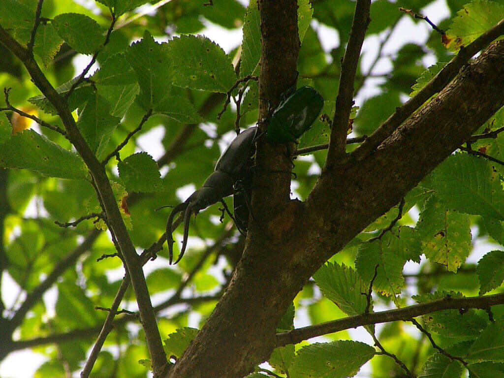 上記の画像のようにクワガタ、カブトムシは大体つがい(♂♀ペア)でいることが多いんです。おそらく♀のフェロモンに引き付けられた♂が交尾活動を求めてどこからともなくやってくるのでしょう。
