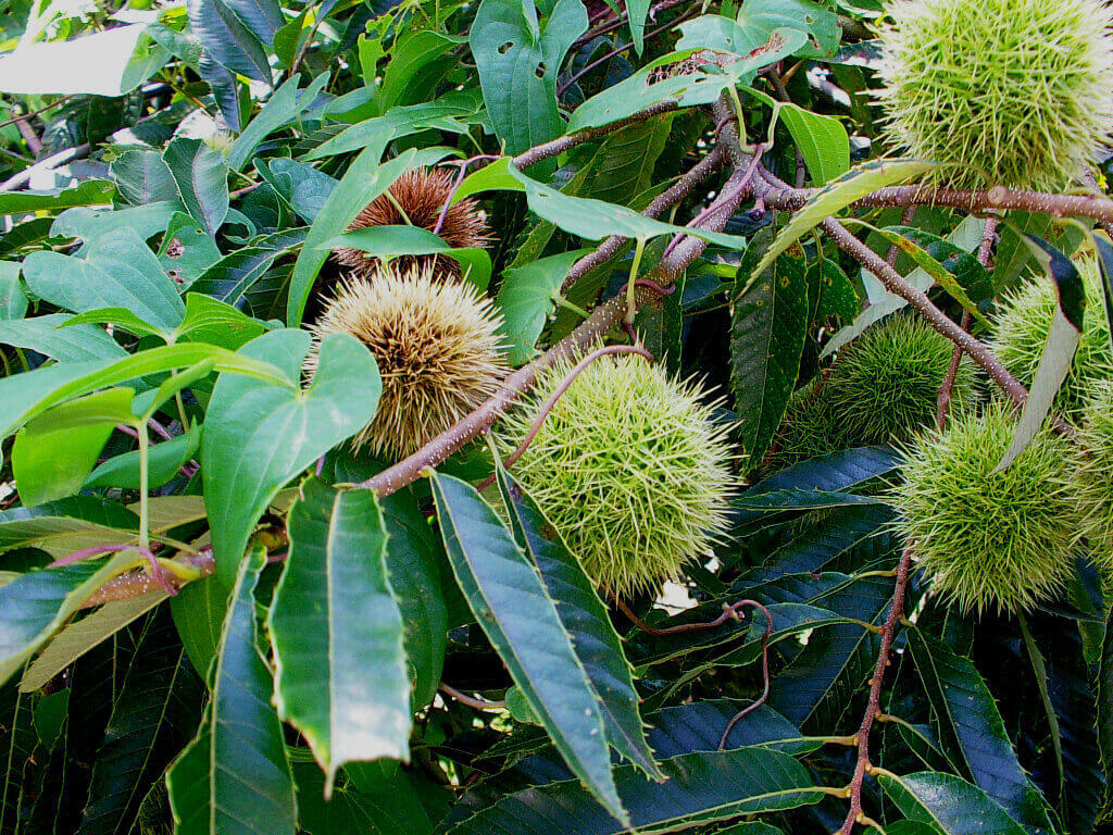 既に落ちているものもありますが、この木の栗はまだたわわに実っていました。