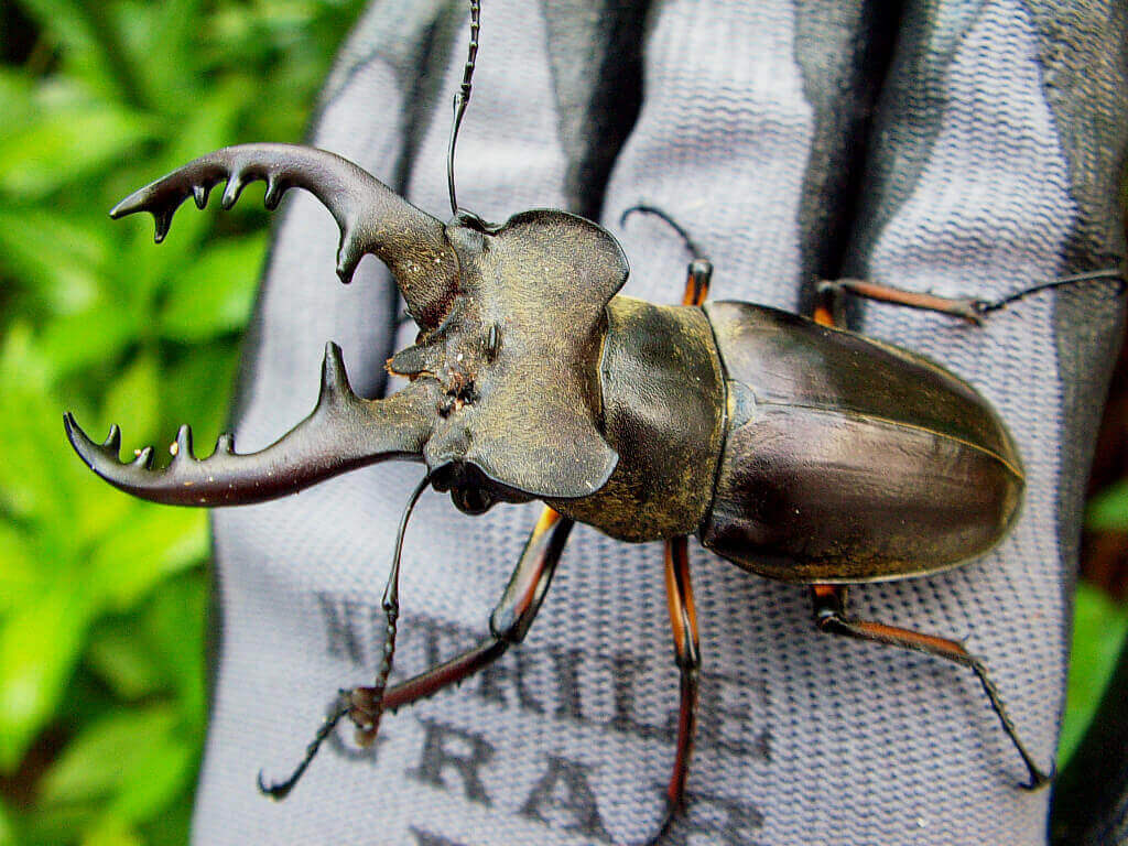 拡大図:ちょっと見ずらいですが、おそらくヒラタクワガタの♀ですね。