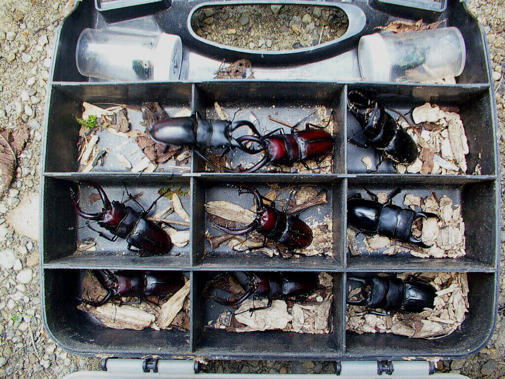 上記6頭がまとめて落ちて来ました。クワガタシャワーです。