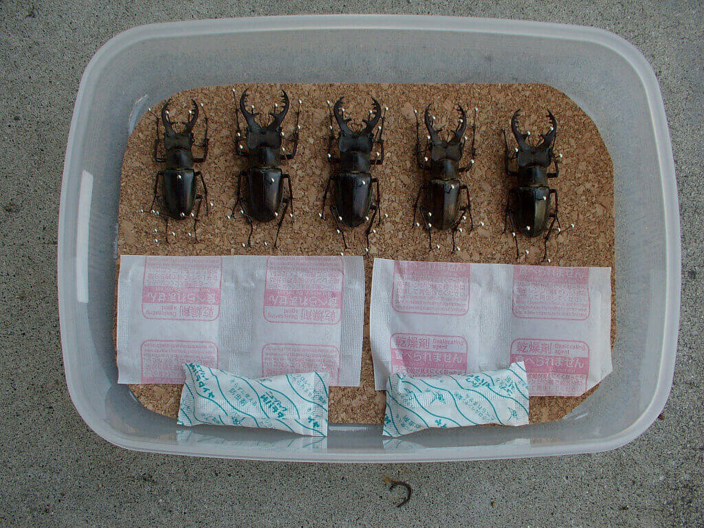 後はタッパーのふたをしっかりと閉め、中の虫達が乾燥するまでじっくりと待ちます。