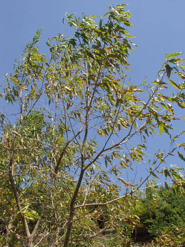 ハルニレの木。葉がかなり黄色くなり、枯れ始めています。