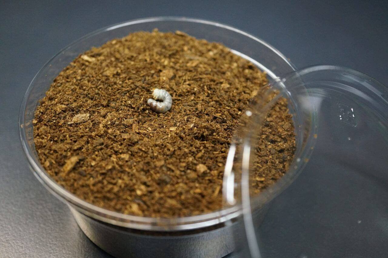 【参考例:マットの上に置かれた1令クワガタ幼虫】