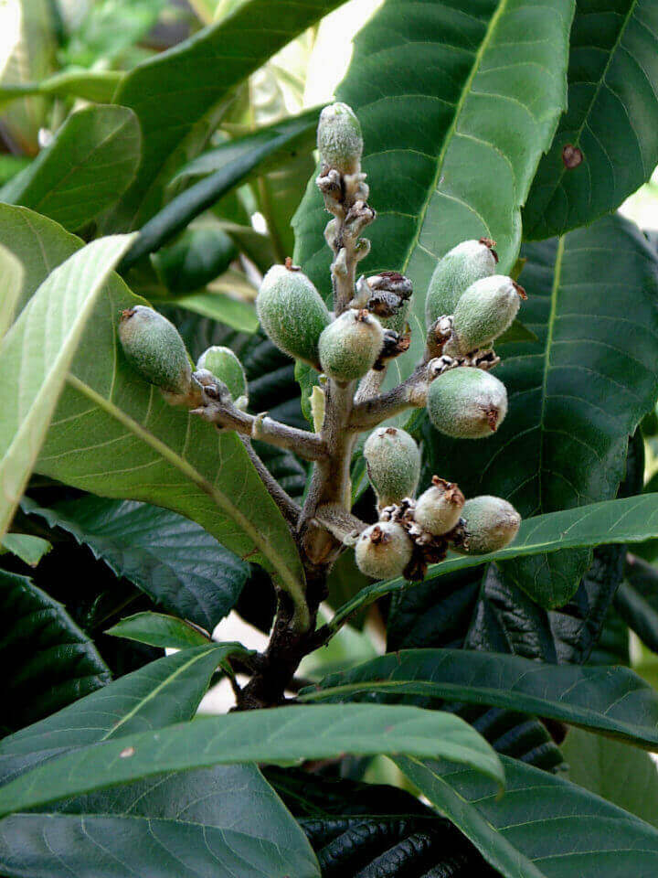 ビワの木にも実が付き、少しずつ膨らんできました。