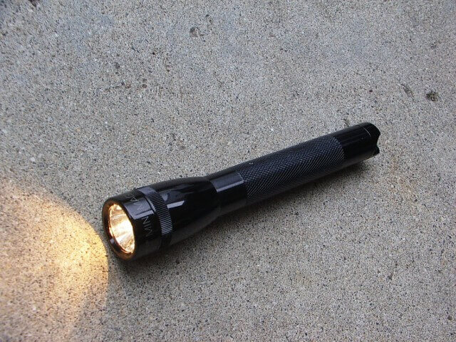 懐中電灯(大)です。結構大き目の懐中電灯で、光の強さも強く、かなり遠くまで光が届きます。暗い所で回りを照らしたり、灯火採集の際にとても重宝します。