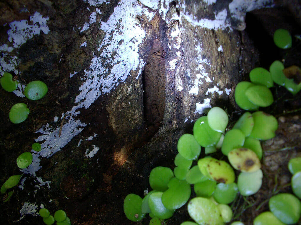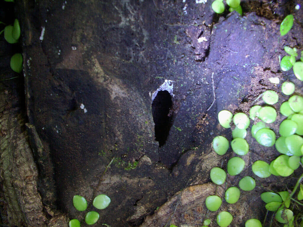 別のハルニレの木の根部に近いウロ(穴)を覗いて見ると、