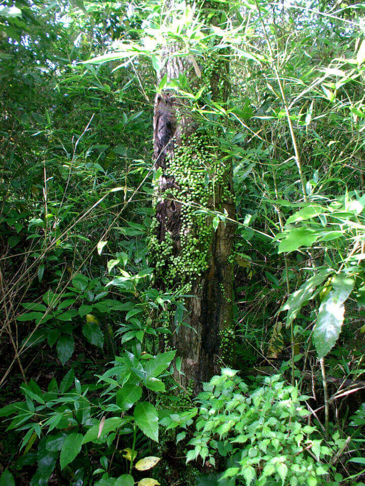 ウロ(穴)や樹皮裏がないので蹴ってみると、