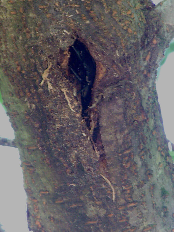 ここまでズームアップして、初めてウロの中にクワガタらしき姿を捉える事が出来ました。