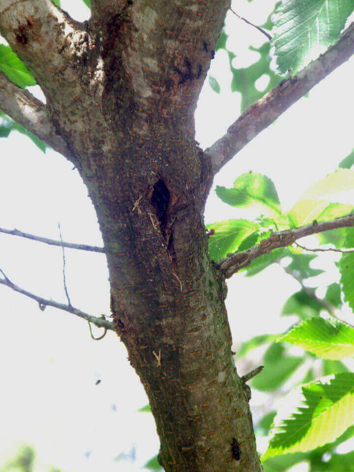 そうです、左上のこの枝別れしている所にウロ(穴)が開いています。