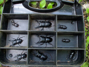 ※ 採集はマナーが大事です。採集する場所が私有地の場合は、 無断では入らないようにしましょう。必ず持ち主さんに断りを入れるのは必須です。あと、虫が木の穴の中に入って採れないからと言って、木を切ったり、傷つけたりするのも好ましいとは言えません、自然にやさしく、モラルを守って採集を楽しみましょう。(^^)