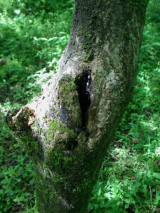 コウモリガ等の幼虫によって木に穿孔穴が見られます。