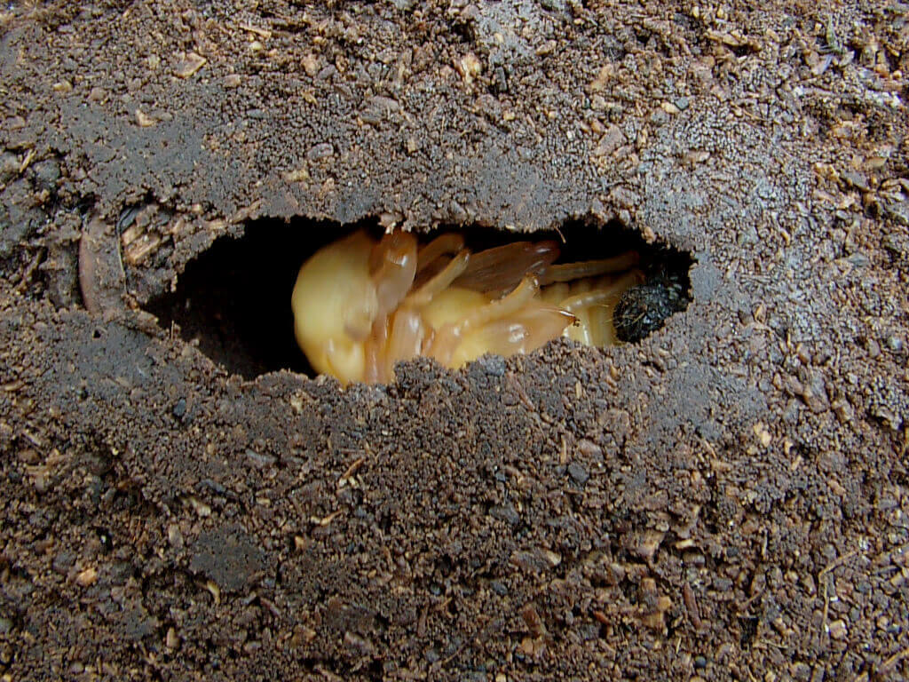 こちらは♂の蛹。小さくても立派な大アゴが見えます。