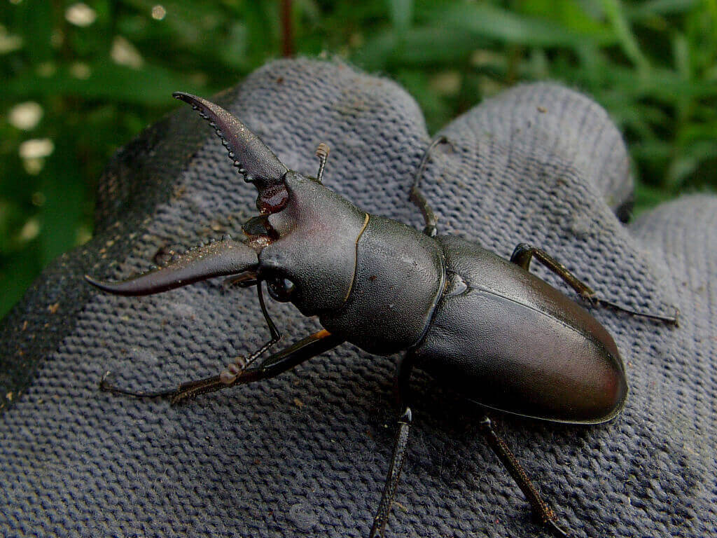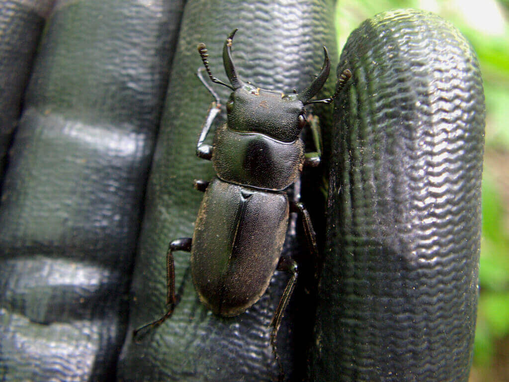 逃げ込む前に捕まえてみると、コクワガタの♂個体。